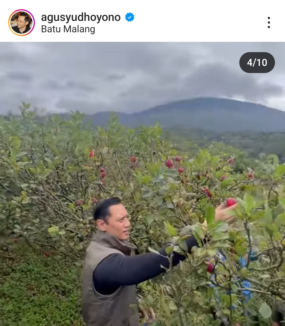 ini adalah momen di mana saya bisa memetik langsung buah apel dari pohonnya, lokasinya di Kebun Puri Agung, Kota Batu, Jawa Timur. Pertanian kita adalah salah satu sektor yang perlu kita bangun dan dorong untuk bangkit dan maju,” tulis AHY, dikutip Selasa (24/10/2023).