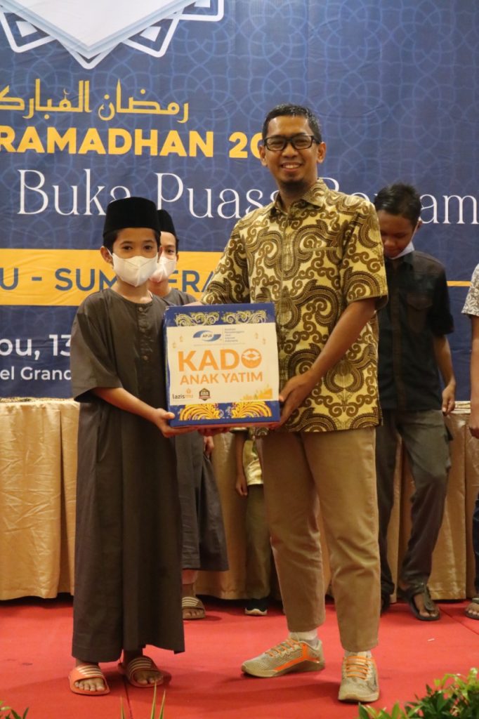 Riaumag.com , Pekanbaru—APJII Riau – Sumatra Barat bekerjasama LAZISMU Pekanbaru salurkan 20 paket Kado Bahagia Anak Yatim