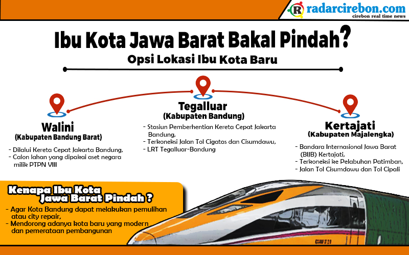 Gubernur Jabar Ridwan Kamil menyebut ada tiga wilayah yang digadang-gadang jadi calon ibu kota baru, yakni Tegalluar, Walini, dan Segitiga Rebana (Cirebon, Subang, Majalengka). Dari tiga daerah tersebut, Segitiga Rebana yang memiliki wilayah paling luas.