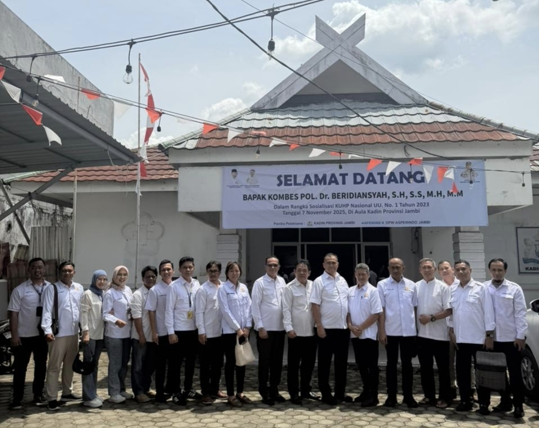 Riaumag.com , Jambi, 7 November 2025 — Dewan Pimpinan Wilayah (DPW) Asosiasi Perusahaan Jasa Pengiriman Ekspres, Pos, dan Logistik Indonesia (Asperindo) Provinsi Jambi bekerja sama dengan Markas Besar Kepolisian Republik Indonesia (Mabes Polri) dan Kamar Dagang dan Industri (KADIN) Provinsi Jambi menggelar kegiatan Sosialisasi KUHP Terbarukan Tahun 2023, pada Jumat pagi 16 Jumadil Awal 1447