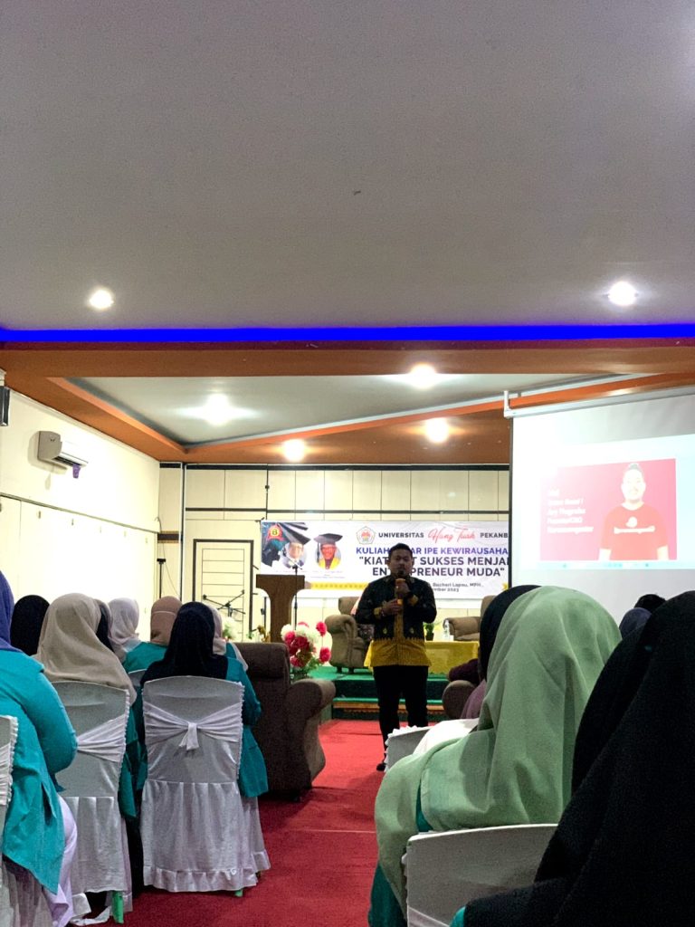 RIAUMAG.COM , PEKANBARU – UHTP Unggul ——– Fakultas Kesehatan UHTP menggelar kuliah pakar IPE (InterProfesional Education) yang bertajuk “Kiat-kiat Sukses Menjadi Entrepeneur Muda”. Kegiatan tersebut dihadiri secara langsung oleh Sekretaris Prodi Kebidanan Octa Dwienda, SKM., M.Kes serta 10 orang dosen dari Fakultas Kesehatan Universitas Hang Tuah Pekanbaru (UHTP) Kuliah Pakar ini menghadirkan pembicara Ary Nugraha, owner dari startup Keroncongantar, dan diselenggarakan di Aula Prof. DR. Dr. Bukhari Lapau, MPH. Kegiatan tersebut berlangsung hari Rabu (06/12/2023), dari pagi hingga siang hari.