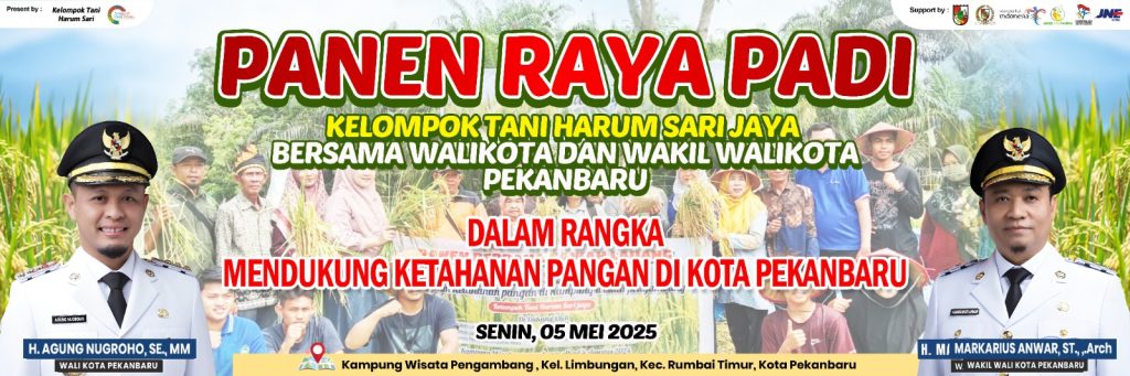 RIAUMAG.COM , PEKANBARU———Semangat pertanian di Kota Pekanbaru kembali bergelora melalui acara Panen Raya Padi yang akan digelar pada Senin, 5 Mei 2025, di Kelurahan Limbungan, Kecamatan Rumbai Timur. Acara ini menjadi simbol keberhasilan petani lokal dalam mengembangkan sektor pertanian, khususnya padi, serta bentuk sinergi antara pemerintah, penyuluh, dan kelompok tani.