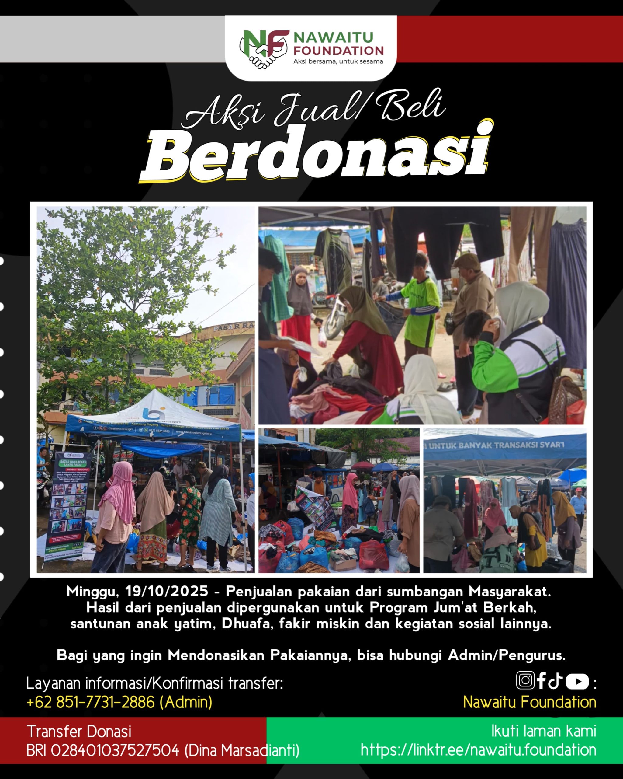 “Setiap helai baju yang terjual akan berubah menjadi senyum dan bantuan bagi mereka yang membutuhkan. Ini adalah semangat Nawaitu (niat tulus) yang kami wujudkan.”