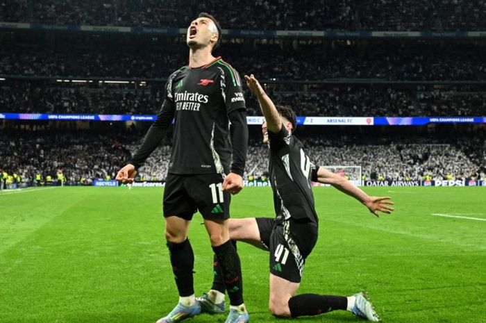 RIAUMAG.COM……Arsenal tertawa lebar saat menyambangi markas Real Madrid pada leg kedua perempat final Liga Champions 2024-2025.Mereka sukses meraih kemenangan 2-1 dalam laga di Estadio Santiago Bernabeu, Rabu (16/4/2025) atau Kamis dini hari WIB.