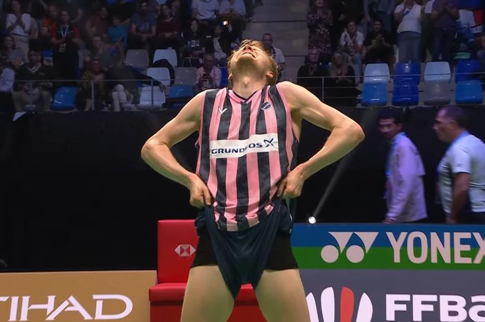 Pengembalian yang terlalu pelan dari Popov menjadi poin kemenangan Antonsen pada gim pertama dan gim kedua.