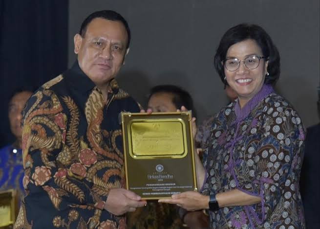 Penghargaan itu diberikan langsung oleh Menteri Keuangan Sri Mulyani Indrawati bersama Direktur Jenderal Kekayaan Negara Kemenkeu Rionald Silaban kepada perwakilan KPK yakni Firli Bahuri.